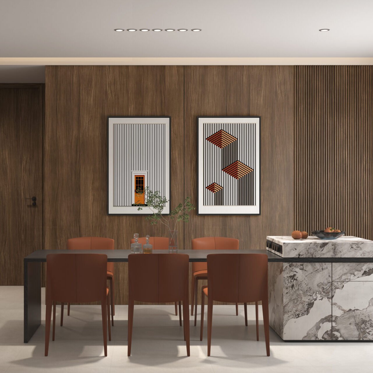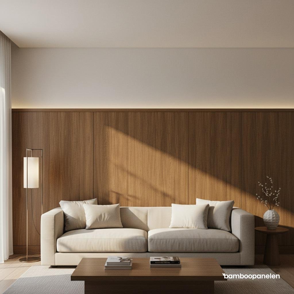 Maak van elke wand een blikvanger – met de duurzame kwaliteit van bamboe en de tijdloze elegantie van walnoot eiken.