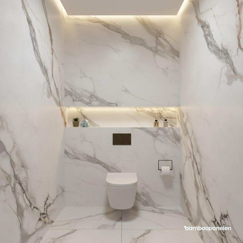 Maak van jouw wand een verbluffende eyecatcher – met de tijdloze pracht van Calacatta Aurea marmer, de glans van onyx en de duurzame kracht van bamboe.