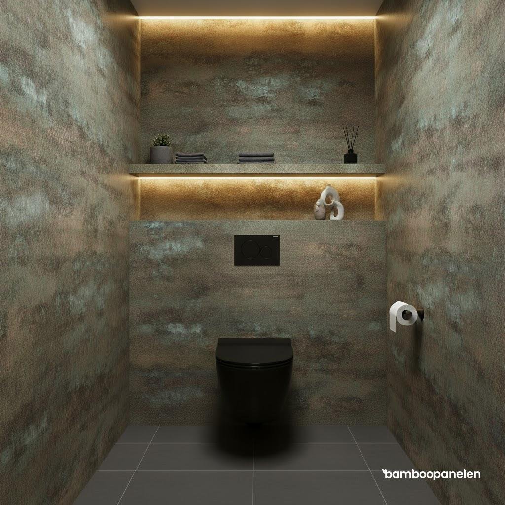 Afwerking: Natuursteen & marmerlook – groen en goud met doorlopende aders